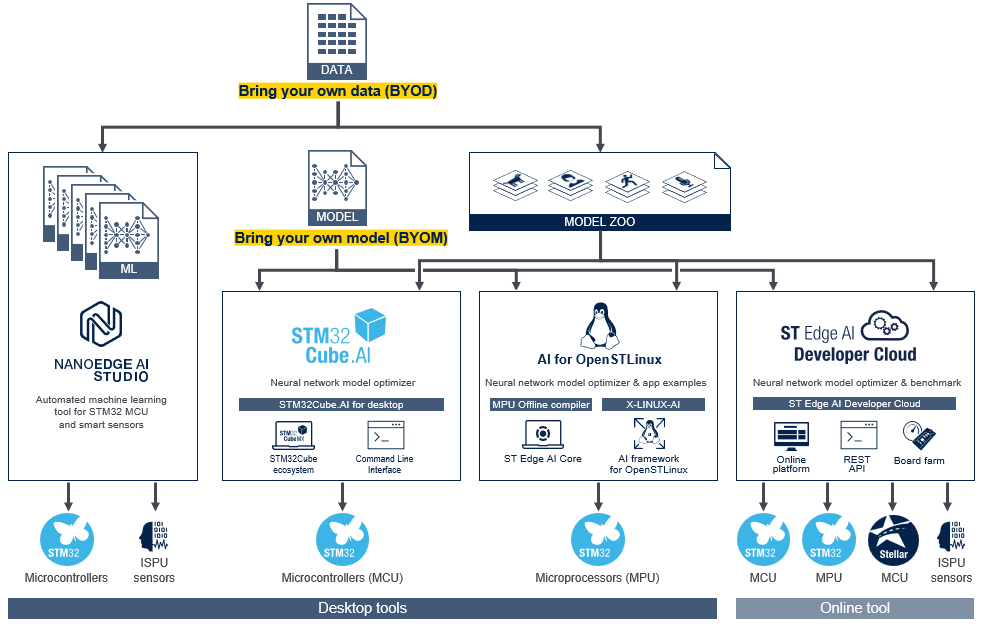除了硬件创新,意法半导体还为客户提供市场上最全面的人工智能生态系统。其中包括STM32模型库,这是一个精心挑选的现成AI模型集合,可助力更快的原型设计并缩短产品上市时间;STM32Cube.AI,这款知名工具允许开发者将预训练的神经网络模型转换为针对STM32微控制器优化的代码,确保无缝部署;NanoEdge AI Studio,作为AutoML工具,它提供适用于多种时间和频率域应用的微型模型(仅几千字节),针对多种MCU进行了优化,支持有无硬件加速。