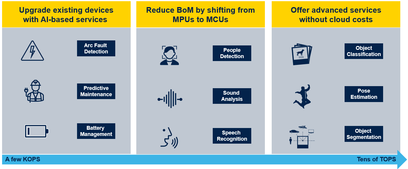 在工业领域,边缘人工智能呈现出多种趋势。计算机视觉和音频应用采用速度快,潜力巨大,同时,边缘人工智能最大的未开发潜力在于那些不太显眼但关键的工业领域,如汽车中的电池管理系统(BMS)、太阳能电站中的电弧故障检测、电动工具和工业设备等。
